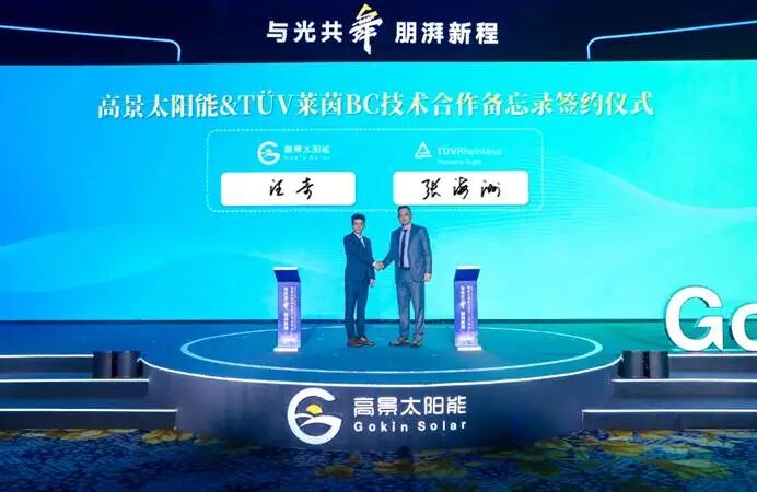 作为此次活动的重要落地成果之一,峰会现场,高景还与德国莱茵TÜV集团共同签署了BC技术合作备忘录。双方将在技术研发、测试认证、标准共建等方面深化协作,进一步强化BC生态的协同基础,为行业提供更可靠、更高效的解决方案。