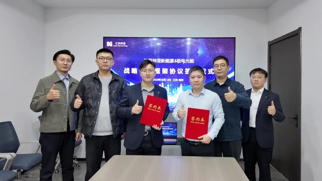 12月12日,极电光能与江苏梓涅新能源有限公司(以下简称“江苏梓涅”)正式签署战略合作协议。双方将以7MW钙钛矿光伏电站项目为起点,共同推动前沿钙钛矿技术创新与场景化落地,为区域能源结构转型与绿色发展注入强劲动能。