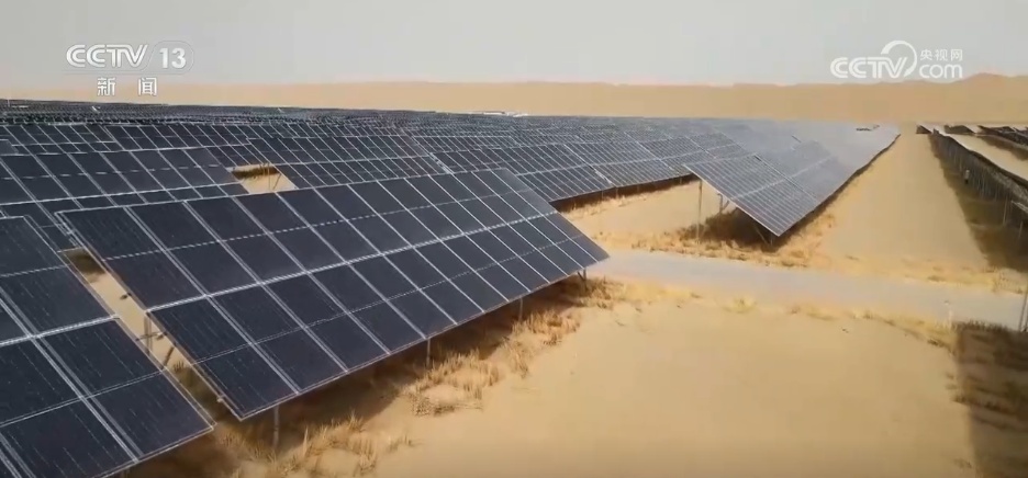 中国石油塔里木油田新能源事业部执行董事 雷霆:通过在流沙上建设光伏板,不仅能在板上发电,还降低了风速,营造了阴凉,在板下铺设滴灌带进行生物治沙,一举多赢。预计到明年,装机将超过400万千瓦。