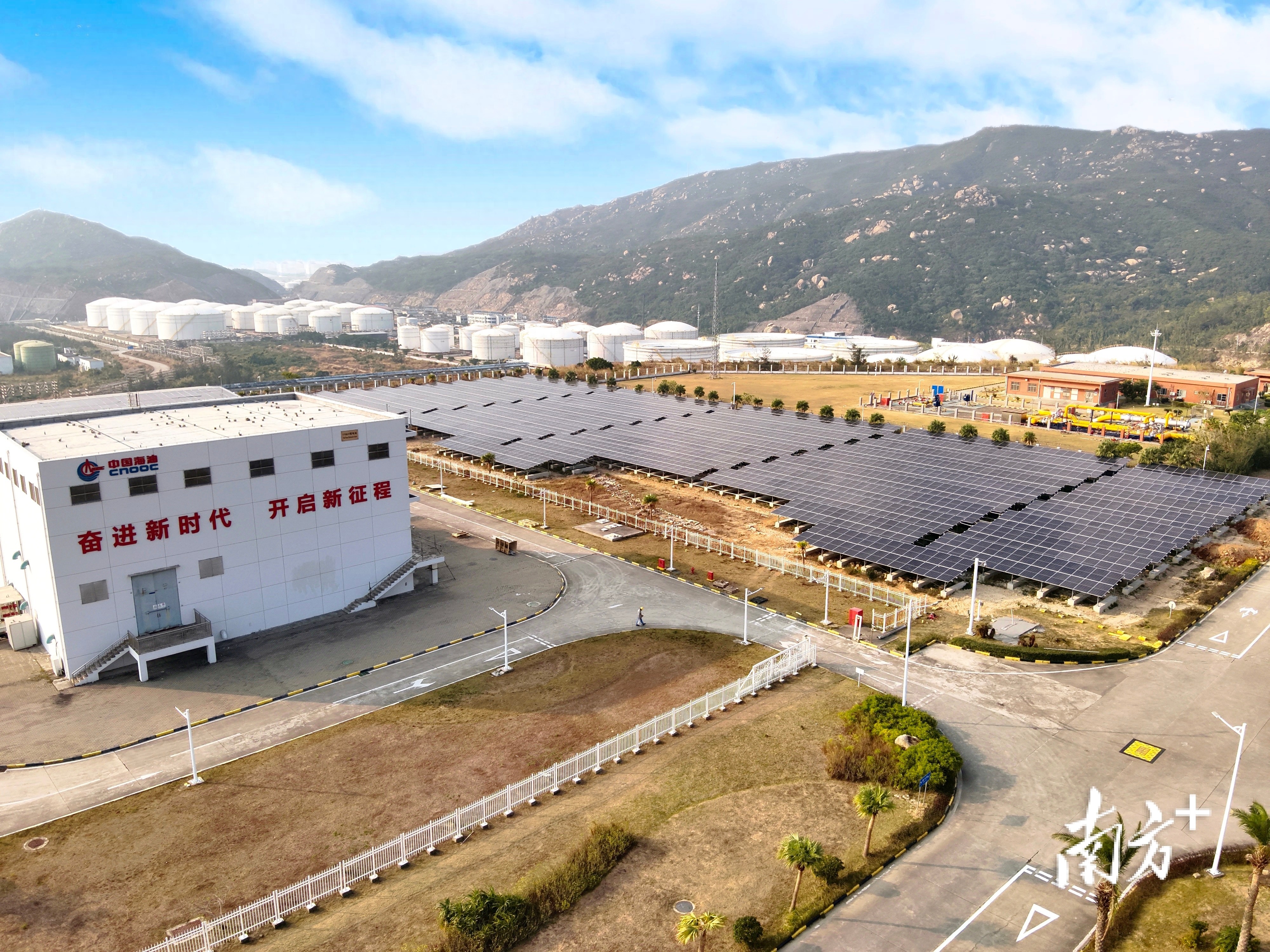 高栏终端分布式光伏发电项目是南海东部油田首个新能源示范项目,分为两期建设。一期已于2023年1月并网发电,累计发电超530万千瓦时。二期项目总装机容量8.19兆瓦,预计年均发电量达966万千瓦时,相当于满足约10万户普通家庭一年的用电需求。