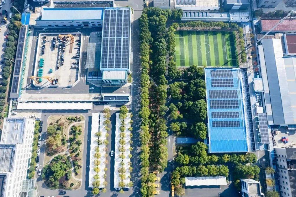 在溧阳高新区创智园内,微电网充分利用屋顶、车棚资源铺设了2.8兆瓦屋顶光伏组件,园区光伏年产绿电可满足35%的用电需求,达到近零碳园区建设标准。
