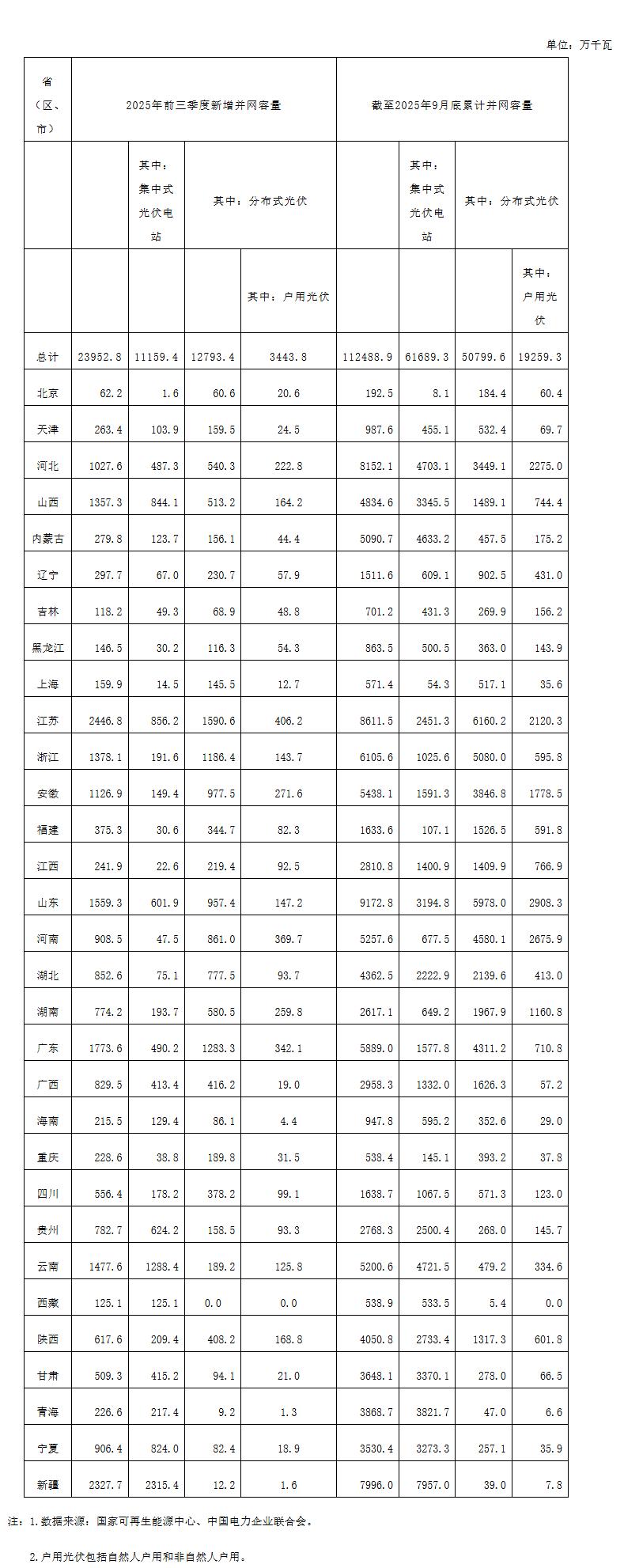 11月12日,国家能源局在其官网发布2025年前三季度光伏发电建设情况。