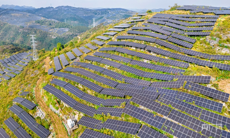 黔西市定新乡石漠化荒山上建起的光伏发电项目(央广网发 史开心 摄)