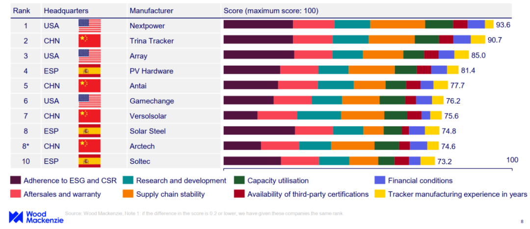 图:伍德麦肯兹全球前十跟踪支架制造商