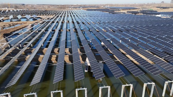 项目位于山东省济南市槐荫区,总装机容量51.6兆瓦,是集“渔业养殖、休闲观光、光伏发电”于一体的科创产业示范基地,由中国电建所属湖北工程公司承建。