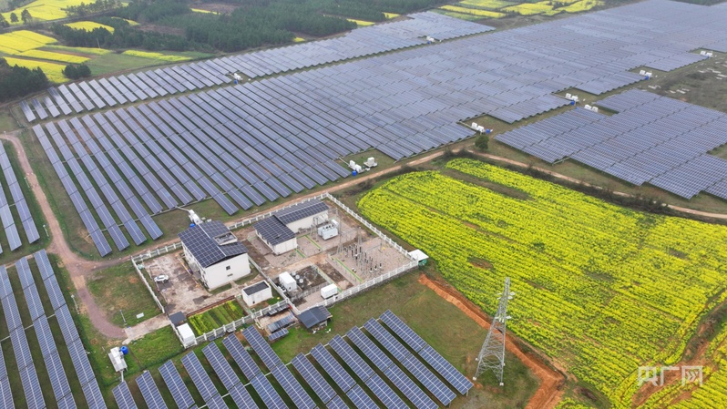 光伏发电站与油菜花田相映成景,壮美如画(央广网发 邓和平 摄)