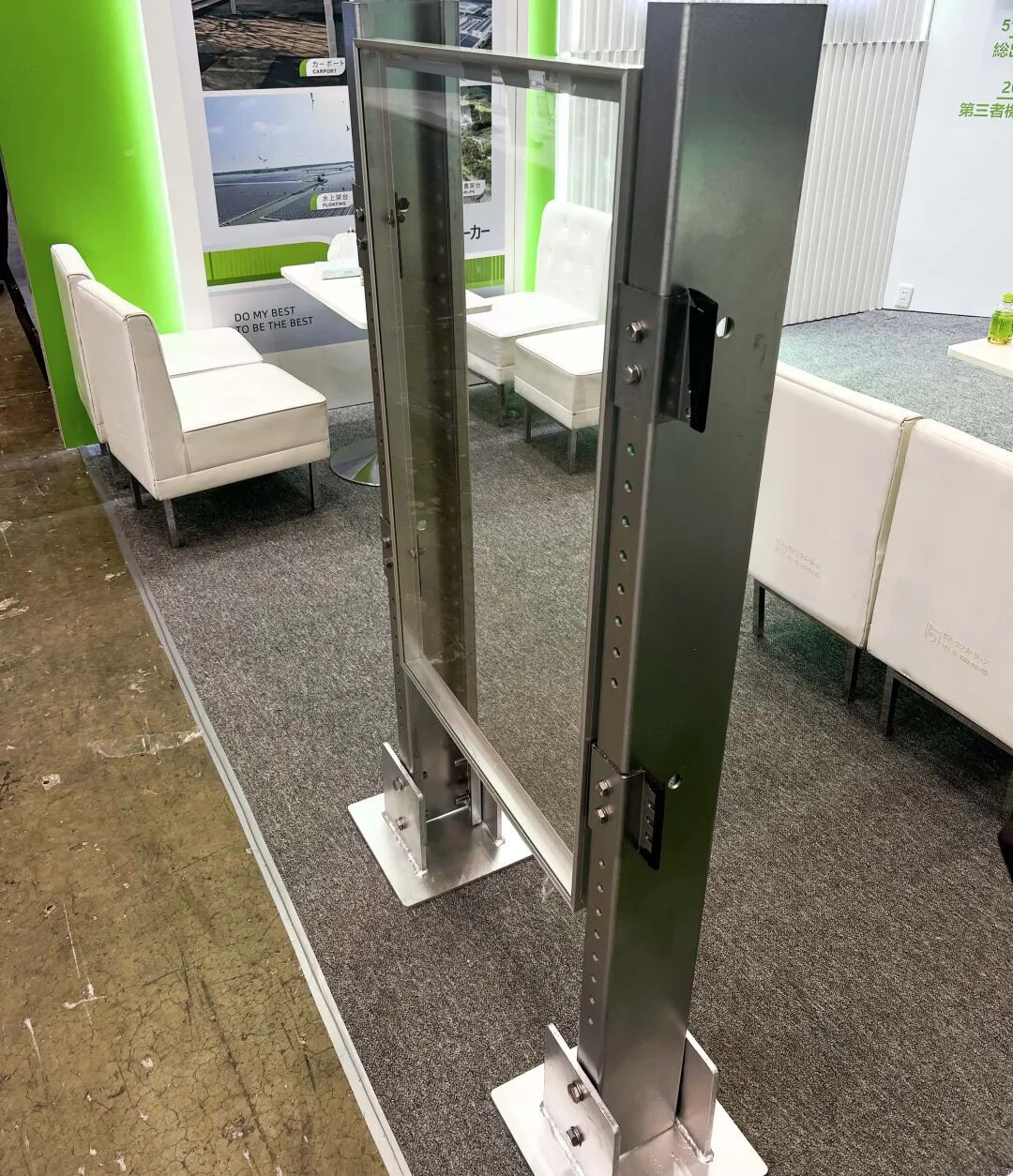 此次,迈贝特首次展出了适用于双面组件的垂直支架系统,不仅离地高度可调,节省占地面积,更便于后期运维,是农田与偏远地区光伏安装的理想选择。