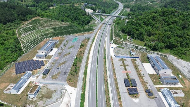 当前,三条高速光伏项目顺利全线并网发电,德余高速思南石林服务区达成“运营期净碳排放为零”目标,荣获“高速公路零碳服务区(五星级)”认证。对此,李源朝感慨道:“每一块光伏板的铺设,都是对绿色发展的践行;每一度清洁电力的产生,都是向‘双碳’目标的迈进。”