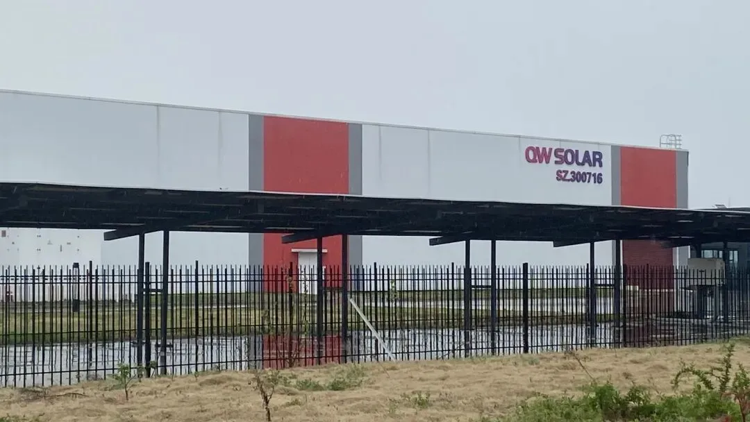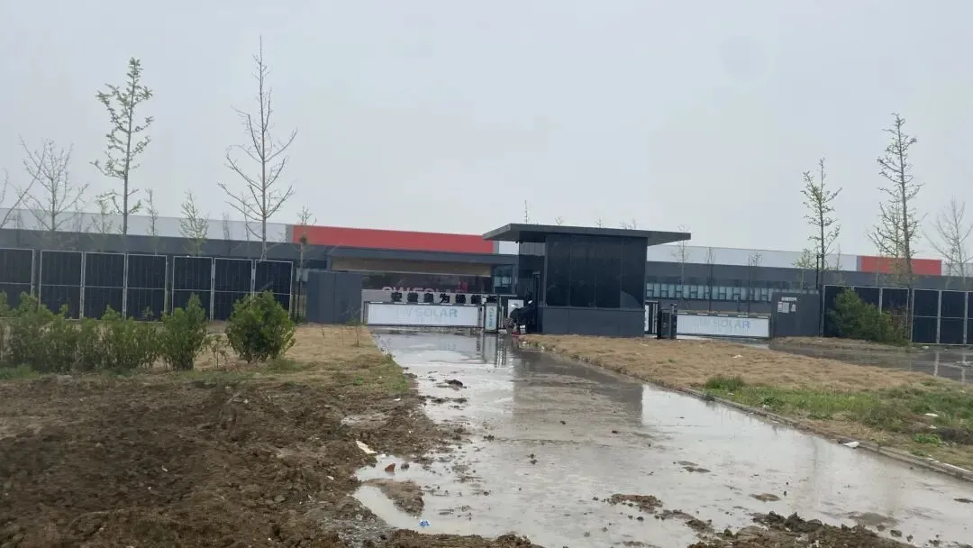4月8日下午,狂风呼啸,骤雨冲刷着大地。记者在泉为科技安徽泗县基地看到,这个曾经号称百亿元投资、千亩用地的县域现象级光伏项目,如今却人烟寥寥。标准化厂房一字排开绵延百米,钢结构的庞大身躯在阴雨天中显得静谧而压抑。厂房多个大门紧闭,停车场空空如也,难以从外观看到一丝生产痕迹。