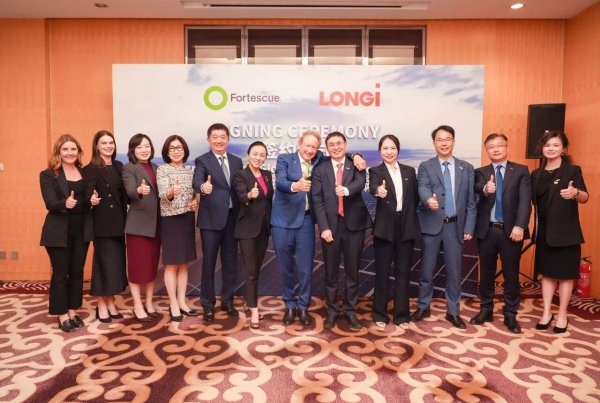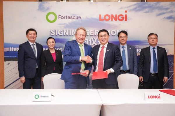 近日,隆基绿能与全球领先的资源与绿色能源企业——澳大利亚福德士河集团(Fortescue Ltd)正式签署合作框架协议。隆基绿能董事长、总经理钟宝申及福德士河执行董事长安德鲁∙福瑞斯特博士共同出席签约仪式,本次签约标志着双方推动全球能源结构绿色转型的战略合作迈出关键一步。