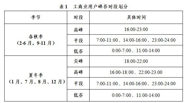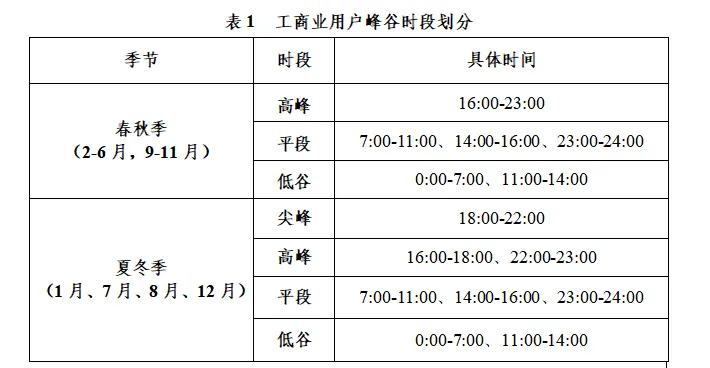 (一)结合不同季节电力供需形势和负荷特性,优化工商业用户季节性峰谷时段设置。具体时段见表1。